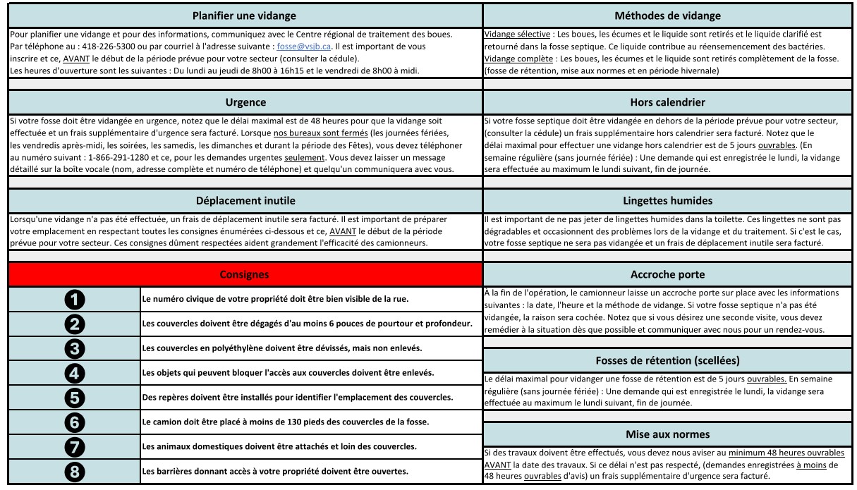 La période de vidange des fosses septiques prévue pour l'année 2026 est du 14 au 25 septembre 2026.
